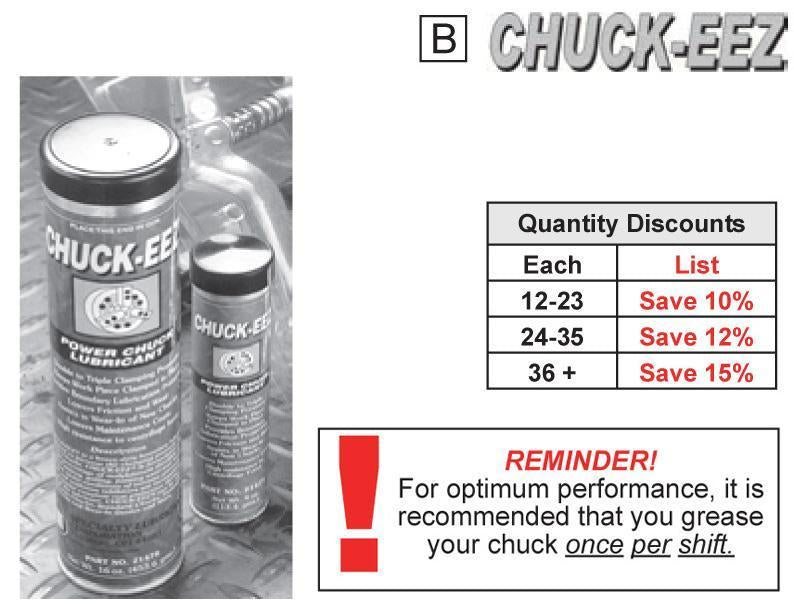 For optimum performance, it is recommended that you grease your chuck once per shift. To order any of these items enter the Part Number into the search bar above. (This will take you to the product page where you can add the item to the shopping cart)