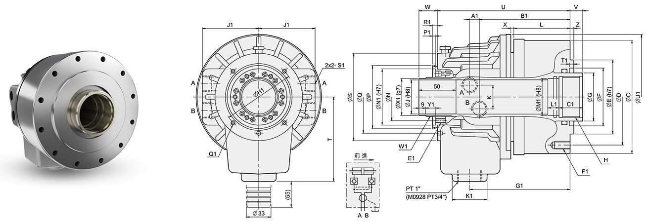 Comparing with the regular product, it is compact (reduced to MAX 95mm) and lighter (weighted MAX 4.5kg). It’s more stable to reduce the burden of the machinery at high speed turning.