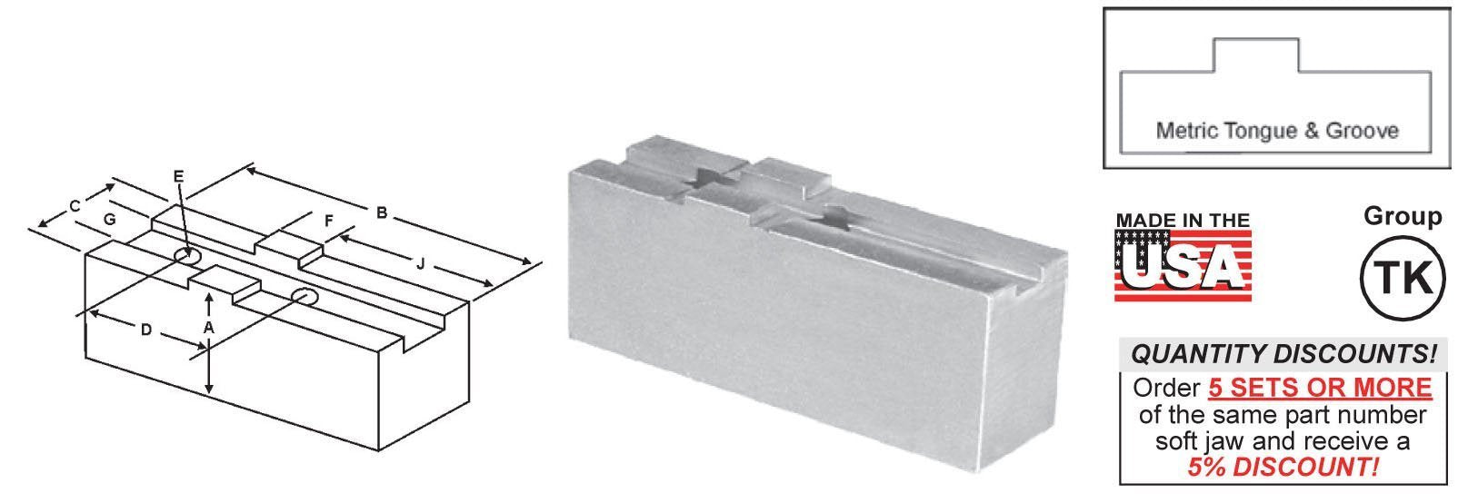 SOFT JAWS FLAT - METRIC TONGUE & GROOVE **FOR USE ON: SMW Autoblok KNCS, SMW Systems, Schunk, Rohm Chucks Using GBK Master Base Jaws