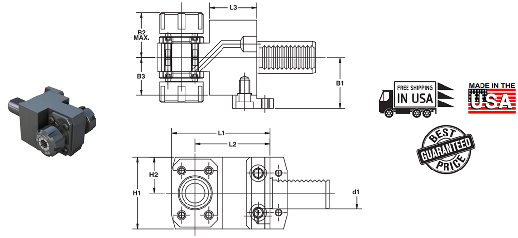 | d1 | B1 | B2 | B3 | H1 | H2 | L1 | L2 | L3 | Part Number | Price |