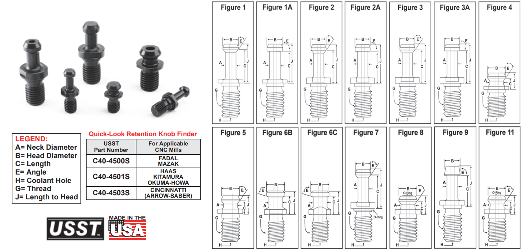 RETENTION KNOBS FOR CAT 40 & CAT 45 TOOL HOLDERS