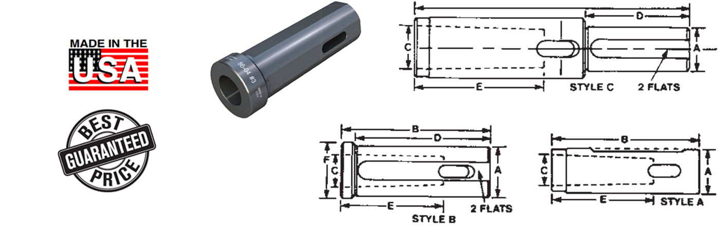 All of our Taper Drill Sockets have been redesigned with a shoulder, as a “B” style, to further insure correct depth of the drilling operation. This new style also provides safety for secondary operations such as boring and reaming. It is held with set screws on two flats so that it will never push back or turn.