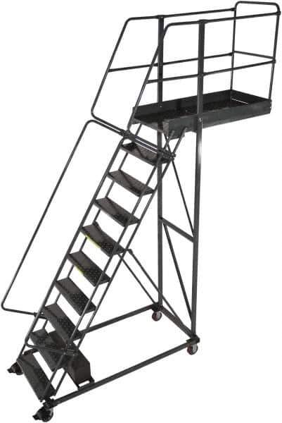 Ballymore - 142" 10 Step Cantilever Ladder - Rolling Work Platform, 300 Lb Capacity, 100" Platform Height, 32" Base Width x 71" Base Depth, Perforated Tread