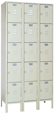 •Brand Name: Lyon •Color: Dove Gray or Putty •Depth: 18 •Height: 72 •Number of Openings: 18 •Style: Six Tier •Type: 3 Wide 6 Tier Locker •Weight: 180 lbs •Width: 12